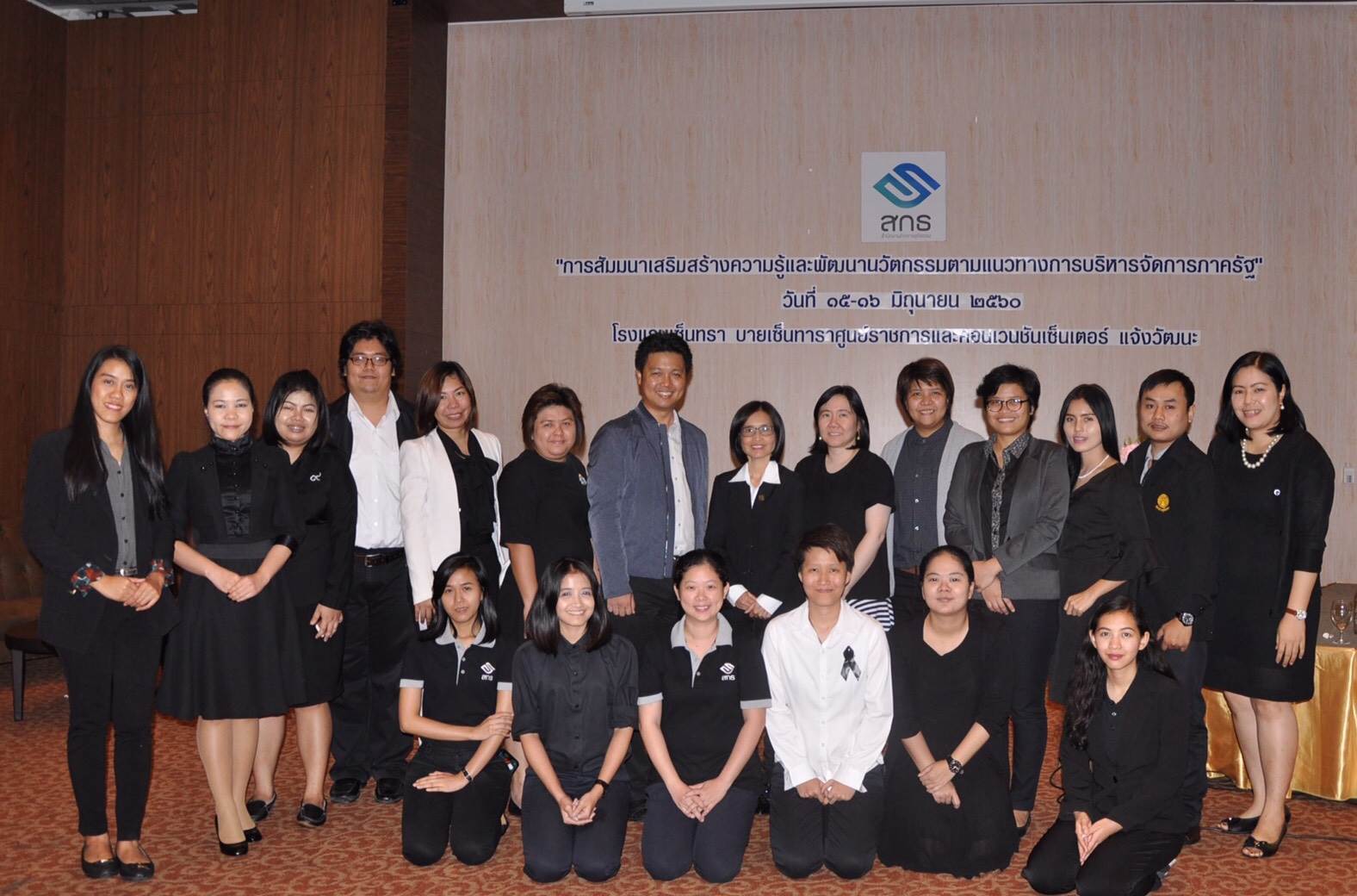 วันที่ 15-16 มิ.ย. 2560 นางสาวนันทรัศมิ์ เทพดลไชย รองผอ.สกธ. ให้เกียรติเป็นประธานเปิดการสัมมนาเสริมสร้างความรู้ และพัฒนานวัตกรรมตามแนวทางการบริหารจัดการภาครัฐ โดยมี บุคลากรทุกหน่วยงานใน สกธ เข้าร่วมรับฟังการบรรยายจากวิทยากรผู้ทรงคุณวุฒิ นายกิตติณัฐ พนมฤทธิ์ ที่ปรึกษาด้านการพัฒนาระบบคุณภาพและการจัดการเชิงยุทธศาสตร์หน่วยงานรัฐ ณ โรงแรมเซ็นทรา ศูนย์ราชการและคอนเวนชันเซ็นเตอร์ แจ้งวัฒนะ