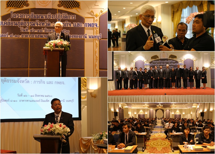 วันนี้(16 ส.ค.60) เวลา 09.00 น. ณ ห้องจูปิเตอร์ 8 – 10 อาคารชาเลนเจอร์ อิมแพค เมืองทองธานี นายสุวพันธุ์ ตันยุวรรธนะ รัฐมนตรีว่าการกระทรวงยุติธรรม เป็นประธานเปิดโครงการสัมมนาเชิงปฏิบัติการเพื่อขับเคลื่อนยุติธรรมจังหวัด : ภารกิจ และ กพยจ. พร้อมบรรยายพิเศษ เรื่อง “ยุติธรรมจังหวัดกับการขับเคลื่อนยุทธศาสตร์ชาติและยุทธศาสตร์กระทรวงยุติธรรม” โดยมีนายวัลลภ นาคบัว ผู้อำนวยการสำนักงานกิจการยุติธรรม กล่าวรายงาน