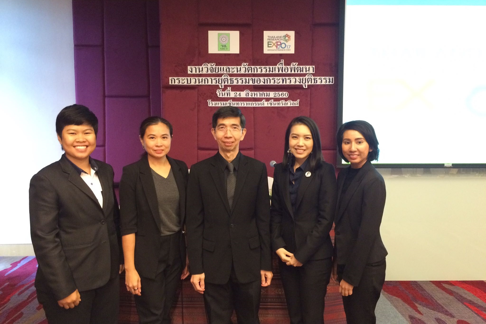 วันนี้ (24 ส.ค. 60) กระทรวงยุติธรรมโดยสำนักงานกิจการยุติธรรม จัดการประชุมกลุ่มเฉพาะเรื่องในงานหกรรมงานวิจัยแห่งชาติ 2560 (Thailand Research Expo 2017 ภายใต้หัวข้อ “งานวิจัยและนวัตกรรมเพื่อพัฒนากระบวนการยุติธรรมของกระทรวงยุติธรรม” ซึ่งได้รับความร่วมมือจากหน่วยงานในสังกัดกระทรวงยุติธรรมนำเสนอผลงานวิจัยภายใต้ภารกิจของหน่วยงาน ซึ่งวัตถุประสงค์เพื่อเป็นเวทีแลกเปลี่ยนความรู้ แนวคิด และประสบการณ์ รวมทั้งแรงบันดาลใจ นำไปสู่การพัฒนากฎหมายและกระบวนการยุติธรรมให้มีประสิทธิภาพมากยิ่งขึ้น ทั้งนี้มีผู้ที่สนใจเข้าร่วมรับฟังประมาณ 120 คน และมีผลงานวิจัยเข้าร่วมนำเสนอทั้งสิ้นจำนวน 9 เรื่อง ดังนี้