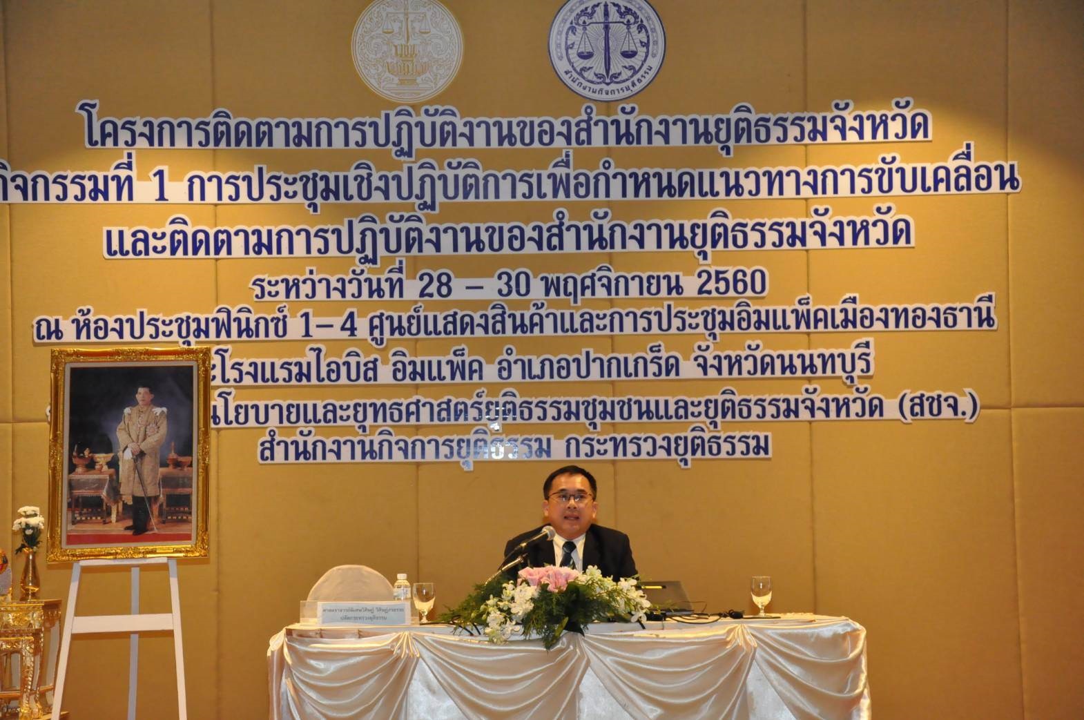 วันนี้ 28 พย.60 เวลา 15.30 น. ณ ห้องประชุมฟินิกซ์ ศูนย์ประชุมอิมแพคเมืองทองธานีศาสตราจารย์พิเศษวิศิษฏ์ วิศิษฏ์สรอรรถ ให้เกียรติเป็นประธานในพิธีเปิด โครงการประชุมเชิงปฎิบัติการเพื่อกำหนดแนวทางการขับเคลื่อนและติดตามการปฎิบัติงานของสำนักงานยุติธรรมจังหวัด ซึ่งกำหนดจัดในระหว่างวันที่28-30พย.60 โดยมีนายวัลลภ นาคบัว ผู้อำนวยการสำนักงานกิจการยุติธรรม ร่วมต้อนรับและบรรยายในหัวข้อเรื่อง บทบาทสำนักงานยุติธรรมจังหวัดกับการขับเคลื่อนกพยจ.