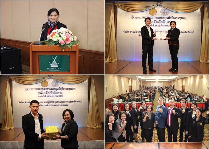 วันนี้ (16 ธ.ค.60) วันสุดท้ายของโครงการฝึกอบรมคณะกรรมการศูนย์ยุติธรรมชุมชน รุ่นที่ 2 ณ โรงแรมเวียงอินน์ จ.เชียงราย