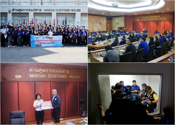 วันที่ 2 ธันวาคม 2562 นายชาตรี จันทร์เพ็ญ ผอ.สพก.นำคณะผู้เข้ารับการฝึกอบรมหลักสูตร Crime Prevention รุ่นที่ 3 ศึกษาดูงานและรับฟังการบรรยายในหัวข้อ “การป้องกันและปราบปรามการลักลอบขนยาเสพติด ณ ด่านศุลกากรแม่สาย จ. เชียงราย สรุปสาระสำคัญได้ ดังนี้