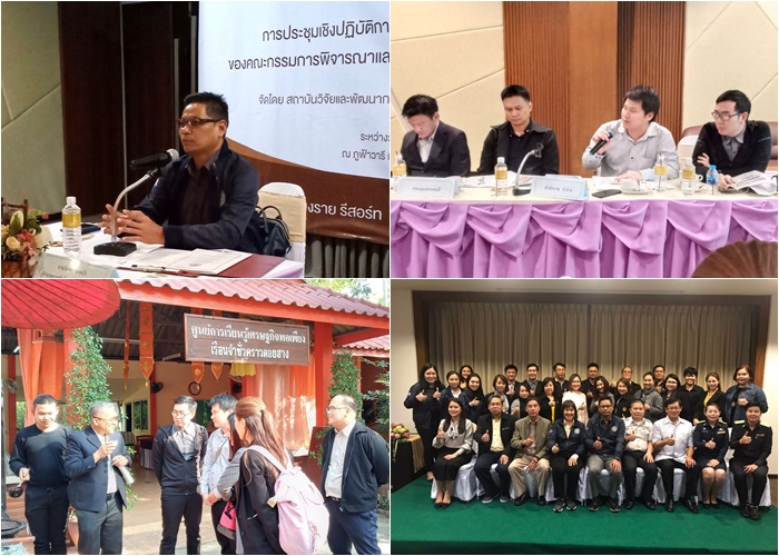 วันที่ 16 ธันวาคม 2562 ได้มีการจัดประชุมเชิงปฏิบัติการเพื่อสนับสนุนการบริหารงานวิจัยของคณะกรรมการพิจารณาและประเมินผลการวิจัยของกระทรวงยุติธรรม ณ โรงแรมภูฟ้าวารี จ.เชียงราย โดยมีนายวัลลภ นาคบัว ผอ.สกธ. เป็นประธานการประชุม พร้อมด้วย นางสาวสุพรรณี ประเสริฐทองกร รองผอ.สกธ ผอ.สวพ. และผอ.กนป. ร่วมกับผู้แทนหน่วยงานในสังกัดกระทรวงยุติธรรม สรุปสาระสำคัญได้ดังนี้