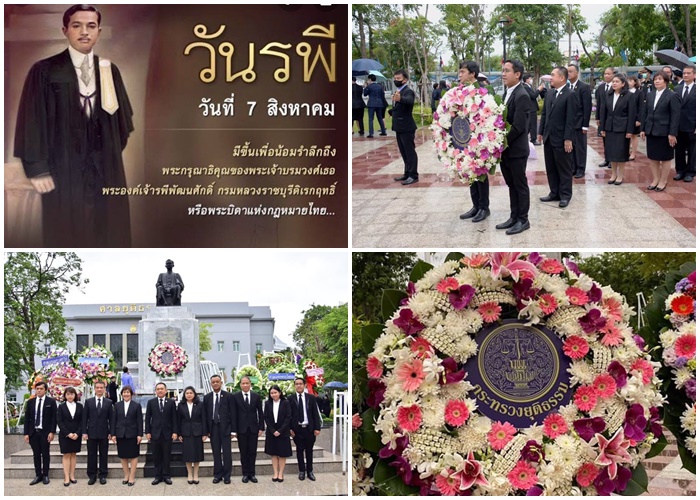 วันที่ 7 สิงหาคม 2563 เวลา 08.00 น. นางสาวสุพรรณี ประเสริฐทองกร รองผู้อำนวยการสำนักงานกิจการยุติธรรม เป็นผู้แทนสำนักงานกิจการยุติธรรม ร่วมงานวางพวงมาลาถวายสักการะพระอนุสาวรีย์ พระเจ้าบรมวงศ์เธอ กรมหลวงราชบุรีดิเรกฤทธิ์ (วันรพีฯ) โดยมีศาสตราจารย์พิเศษวิศิษฏ์ วิศิษฏ์สรอรรถ ปลัดกระทรวงยุติธรรม ปลัดกระทรวงยุติธรรม เป็นผู้วางพวงมาลาฯ ณ หน้าอาคารศาลยุติธรรม ศาลฎีกา ถนนราชดำเนินใน เขตพระนคร กรุงเทพฯ