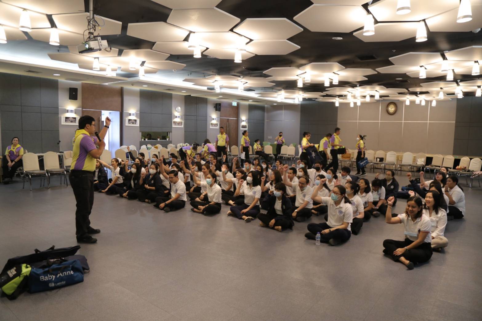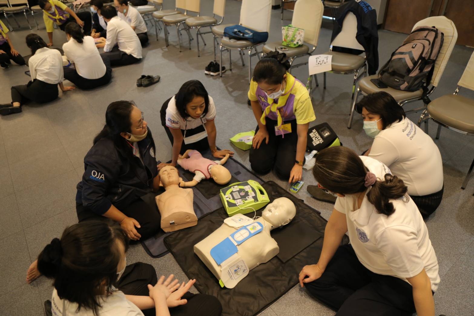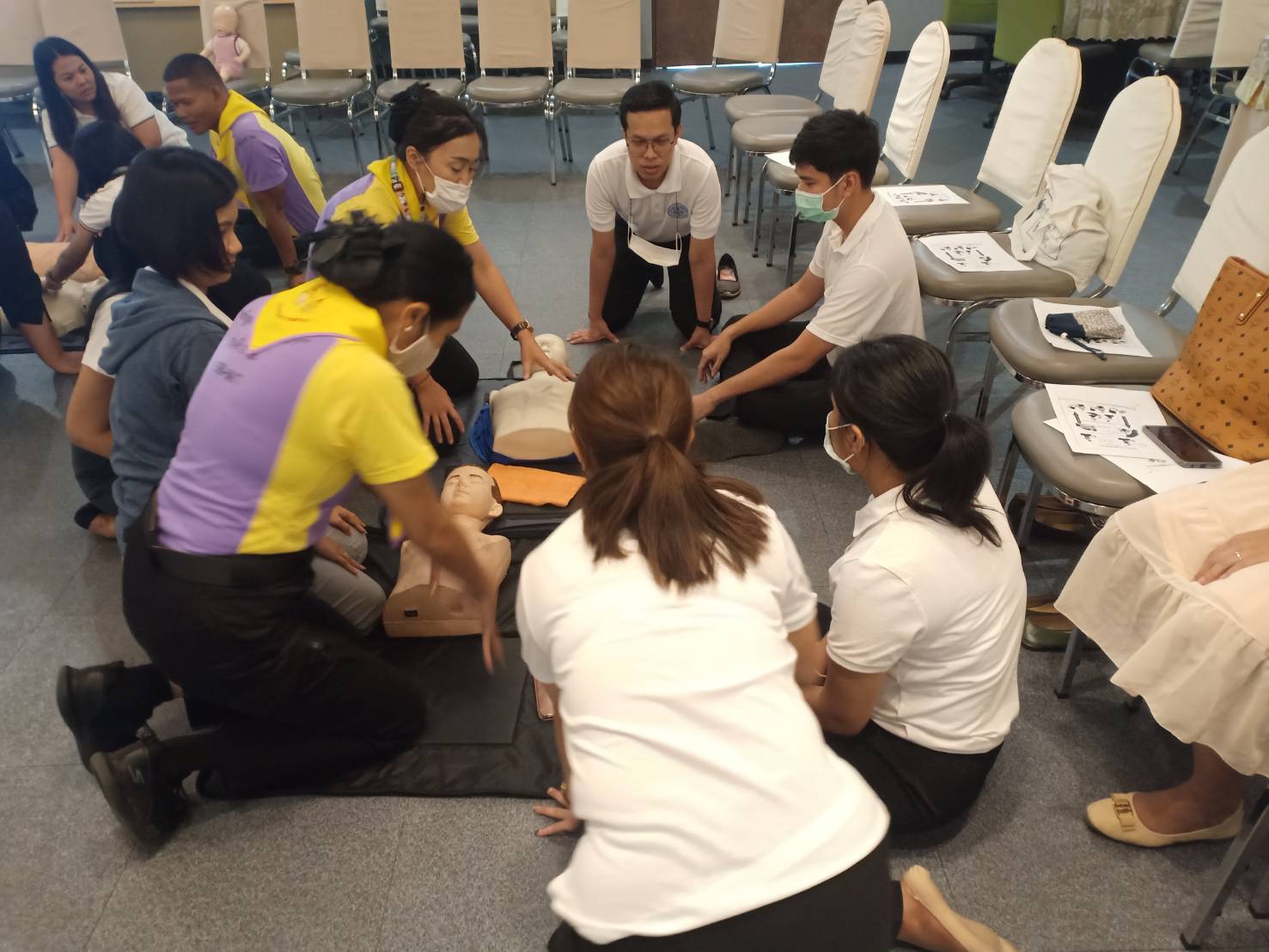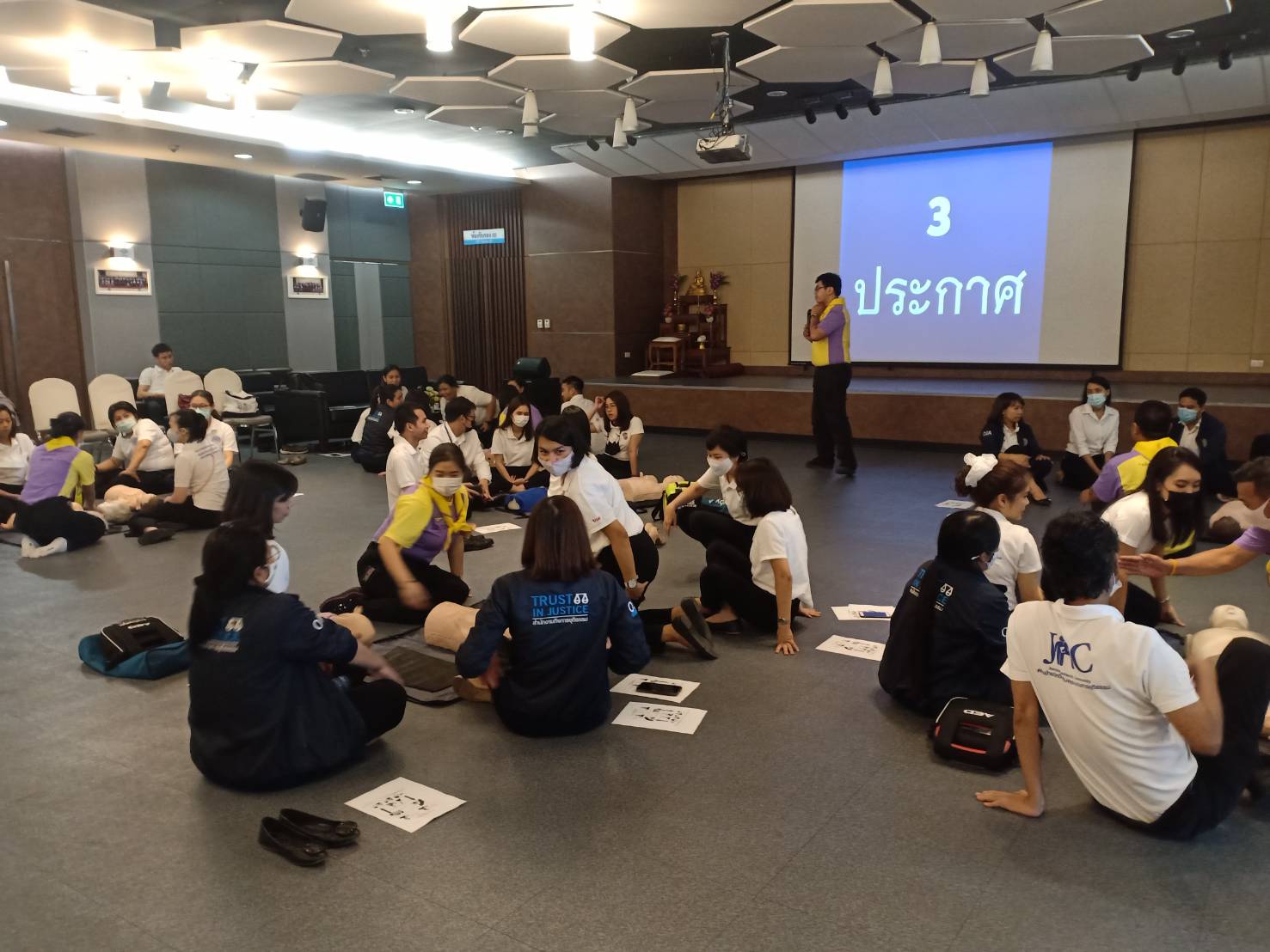 วันที่ 2 ตุลาคม 2563 เวลา 13.00 น. ณ วิทยาลัยกิจการยุติธรรม ผู้บริหารและเจ้าหน้าที่สำนักงานกิจการยุติธรรม เข้ารับฟังการบรรยายและฝึกปฏิบัติในหัวข้อ “การช่วยชีวิตขั้นพื้นฐานและการใช้เครื่องกระตุกหัวใจ” โดยวิทยากรจิตอาสา ๙๐๔