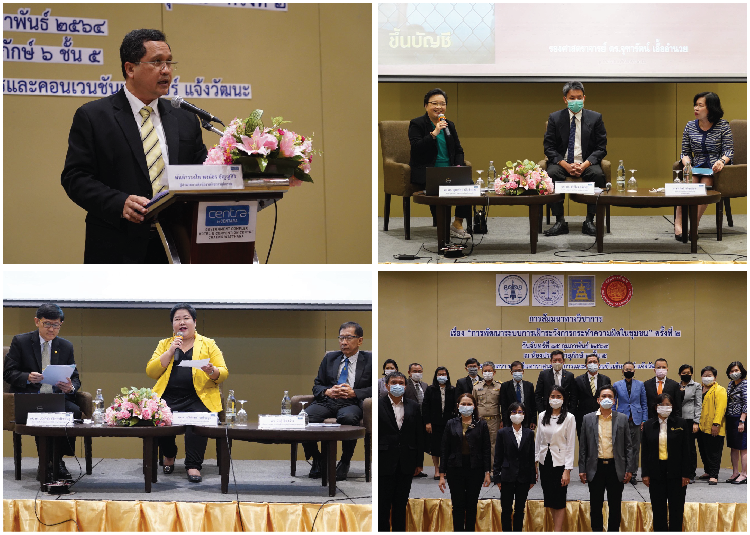 วันที่ 15 กุมภาพันธ์ 2564 ได้มีการจัดการสัมมนาทางวิชาการ เรื่อง “การพัฒนาระบบการเฝ้าระวังการกระทำผิดซ้ำในชุมชน” ครั้งที่ 2 จัดโดย สกธ. คป. คส. และ รท. ณ ห้องประชุมวายุภักษ์ ชั้น 5 โรงแรมเซนทรา ศูนย์ราชการและคอนเวนชันเซนเตอร์ กรุงเทพมหานคร โดยการสัมมนาในครั้งนี้มีจุดประสงค์เพื่อเปิดรับฟังความเห็นจากนักวิชาการจากสถาบันศึกษา และหน่วยงานต่าง ๆ ที่เกี่ยวข้อง เพื่อกำหนดข้อเสนอแนะแนวเกี่ยวกับรูปแบบ แนวทาง และกลไกเฝ้าระวังทางสังคม รวมถึงแนวทางการบูรณาการการทำงานร่วมกันระหว่างหน่วยงานที่เกี่ยวข้องและใช้เทคโนโลยีในการควบคุมสอดส่องที่มีประสิทธิภาพ