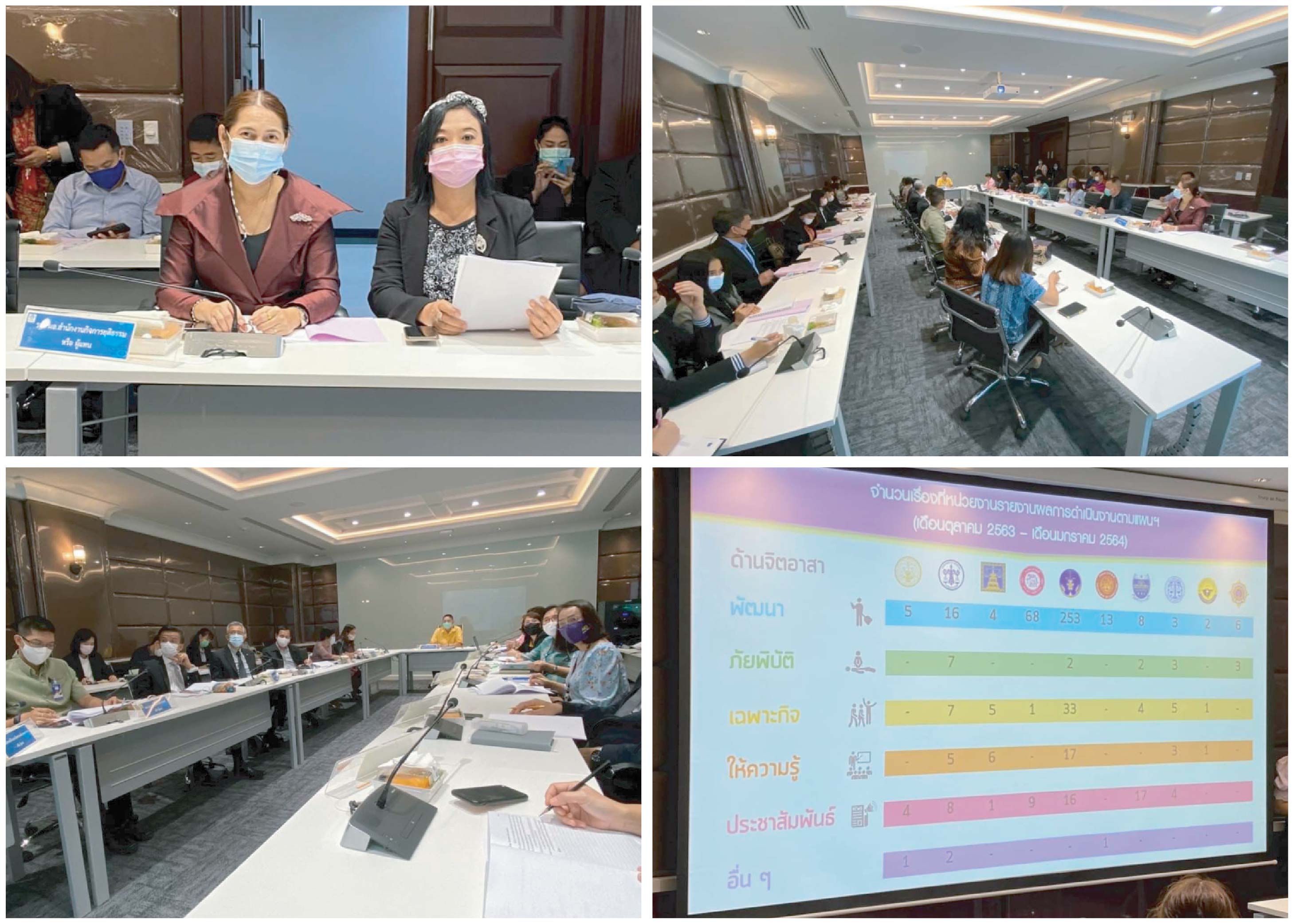 1. ที่ประชุมรับทราบผลการดำเนินงานตามแผนปฏิบัติการเพื่อขับเคลื่อนงานจิตอาสากระทรวงยุติธรรม ประจำปีงบประมาณ พ.ศ. 2564 (เดือนตุลาคม 2563 – เดือนมกราคม 2564) ประกอบด้วย จิตอาสาพัฒนาจำนวน 378 เรื่อง จิตอาสาภัยพิบัติจำนวน 17 เรื่อง จิตอาสาเฉพาะกิจจำนวน 56 เรื่อง จิตอาสาให้ความรู้จำนวน 32 เรื่อง จิตอาสาประชาสัมพันธ์จำนวน 59 เรื่อง และด้านอื่นๆ (วิทยากรจิตอาสา) จำนวน 4 เรื่อง