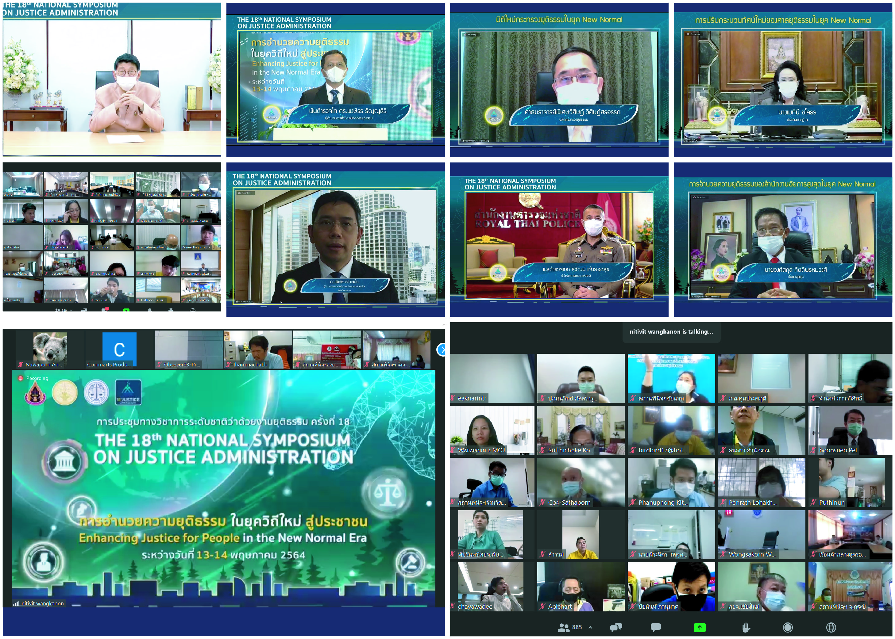 วันที่ 13 พฤษภาคม 2564 เวลา 09.15 น. นายวิษณุ เครืองาม รองนายกรัฐมนตรี ให้เกียรติเป็นประธานพิธีเปิดการประชุมทางวิชาการระดับชาติว่าด้วยงานยุติธรรม ครั้งที่ 18 หัวข้อ “การอํานวยความยุติธรรมในยุควิถีใหม่สู่ประชาชน” พร้อมกล่าวปาฐกถาพิเศษผ่านช่องทางออนไลน์ ในหัวข้อ “ทิศทางการบริหารงานยุติธรรมในยุค New Normal” นอกจากนี้ยังได้รับเกียรติจากผู้บริหารสูงสุดของหน่วยงานหลักในกระบวนการยุติธรรมร่วมกล่าวปาฐกถาพิเศษ ในประเด็นของการอำนวยความยุติธรรมและการบังคับใช้กฎหมายของหน่วยงานในกระบวนการยุติธรรมในยุค New Normal ได้แก่ นางเมทินี ชโลธร ประธานศาลฎีกา, นายวงศ์สกุล กิตติพรหมวงศ์ อัยการสูงสุด, ศาสตราจารย์พิเศษวิศิษฏ์ วิศิษฏ์สรอรรถ ปลัดกระทรวงยุติธรรม, และพลตำรวจเอก สุวัฒน์ แจ้งยอดสุข ผู้บัญชาการตำรวจแห่งชาติ โดยมีพันตำรวจโทพงษ์ธร ธัญญสิริ ผู้อำนวยการสำนักงานกิจการยุติธรรม กล่าวต้อนรับ