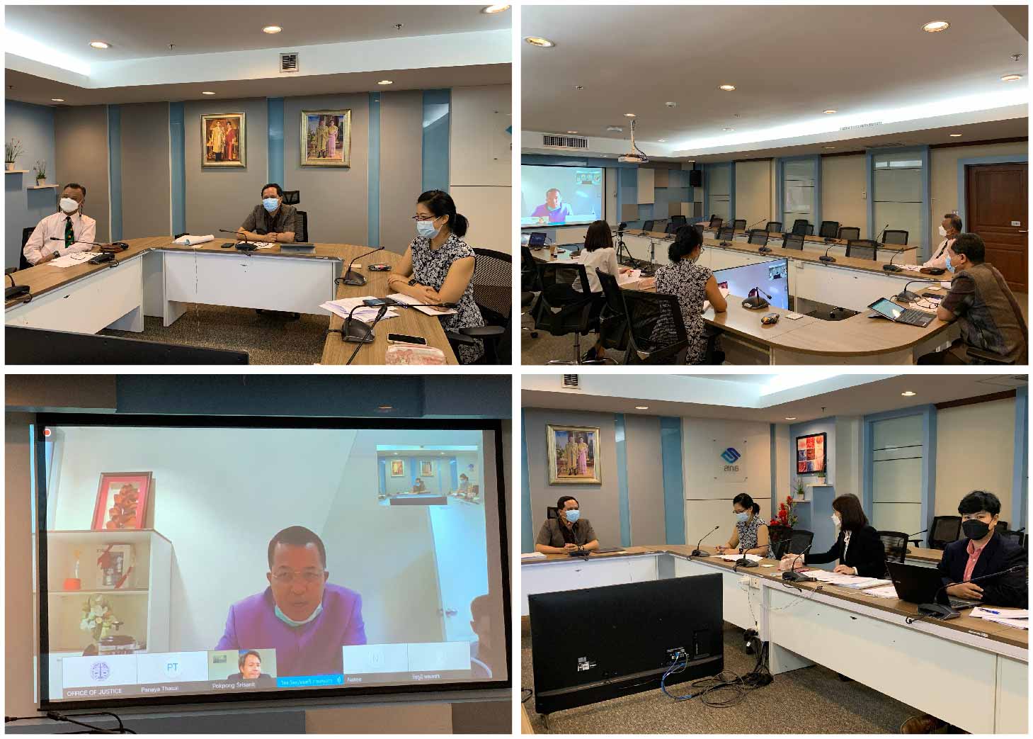 วันที่ 25 มิถุนายน 2564 พ.ต.ท.ดร.พงษ์ธร ธัญญสิริ ผู้อำนวยการสำนักงานกิจการยุติธรรม เป็นประธานในการประชุมหารือร่างพระราชบัญญัติป้องกันการกระทำความผิดซ้ำของผู้กระทำความผิดอุกฉกรรจ์ที่ใช้ความรุนแรง พ.ศ. … โดยมีนายชัยวัฒน์ ร่างเล็ก รองผู้อำนวยการสำนักงานกิจการยุติธรรม นางขัตติยา รัตนดิลก ผู้อำนวยการสถาบันวิจัยและพัฒนากระบวนการยุติธรรม เจ้าหน้าที่ของสำนักงานกิจการยุติธรรม พร้อมด้วยผู้แทนจากกรมคุมประพฤติ โดย พ.ต.ท.มนตรี บุณยโยธิน รองอธิบดีกรมคุมประพฤติ นางสาวสายฝน จันทะพรม ผู้อำนวยการกองอำนวยการบังคับใช้กฎหมายเพื่อการคุมประพฤติ และเจ้าหน้าที่กรมคุมประพฤติ เข้าร่วมการประชุม ดังกล่าวผ่านระบบ Cisco Webex Meetings สาระสำคัญของการประชุม กรมคุมประพฤติ ได้นำเสนอร่างกฎหมายฉบับที่ขอปรับแก้ไข โดยเสนอให้มีการปรับแก้ไขจำนวน 27 มาตรา (ร่างที่ สกธ. เสนอ มีจำนวน ๗ หมวด ๔๗ มาตรา) เพื่อให้ร่างกฎหมายสามารถนำไปบังคับใช้ได้ และหน่วยงานผู้มีอำนาจหน้าที่ตามกฎหมาย สามารถปฏิบัติงานได้อย่างมีประสิทธิภาพ ทั้งนี้ สรุปประเด็นสำคัญที่ขอปรับแก้ไข มีดังนี้