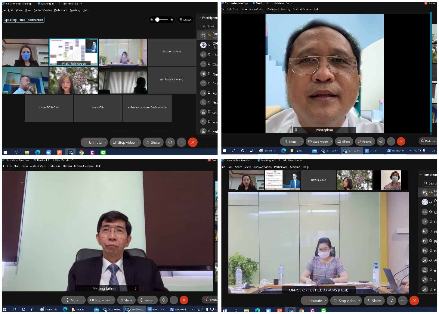 📌 วันที่ 8 กรกฎาคม 2564 เวลา 09.00 น. ผอ.สกธ. ได้ให้เกียรติเป็นประธานการประชุมเชิงปฏิบัติการเพื่อรับฟังความคิดเห็นเกี่ยวกับการปรับปรุงโทษประหารชีวิตโดยวิธีการประชุมทางไกล (Video Conference) ผ่านระบบ Cicso Webex Meetings ร่วมกับผู้แทนหน่วยงานที่เกี่ยวข้องในพื้นที่จังหวัดขอนแก่น ซึ่งเป็นโครงการในความรับผิดชอบของ สวพ. โดยมีรอง ผอ. สกธ. (นายชัยวัฒน์ ร่างเล็ก) และผู้แทนจากหน่วยงานที่เกี่ยวข้องเข้าร่วมการประชุม อาทิ อัยการจังหวัดขอนแก่น ตำรวจภูธรภาค 4 ยุติธรรมจังหวัดขอนแก่น เรือนจำกลางขอนแก่น พัฒนาสังคมและความมั่นคงของมนุษย์จังหวัดขอนแก่น สาธารณสุขจังหวัดขอนแก่น เป็นต้น