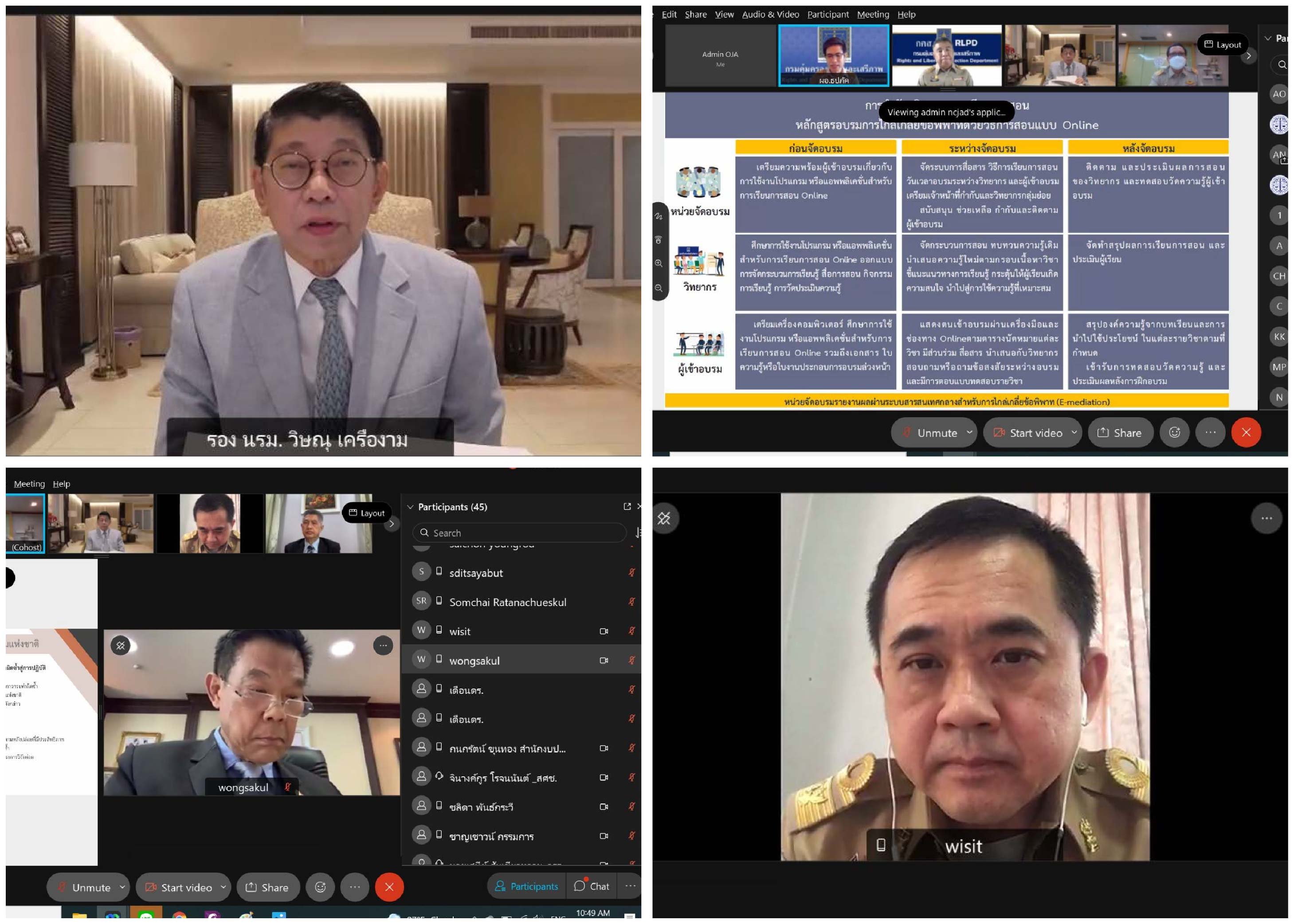 2. การพัฒนาการเรียนการสอนหลักสูตรอบรมการไกล่เกลี่ยข้อพิพาท ตามพระราชบัญญัติการไกล่เกลี่ยข้อพิพาท พ.ศ. 2562 ที่ กพยช. รับรอง โดยที่ประชุมได้เห็นชอบให้เพิ่มรูปแบบการเรียนการสอนแบบ Online เต็มรูปแบบ และการเรียนแบบผสมผสานทั้งแบบ Online และแบบในชั้นเรียน (On-Site) เพื่อให้สอดคล้องกับสภาวะการณ์ในปัจจุบัน จากเดิมที่ได้เห็นชอบในรูปแบบการเรียนในชั้นเรียน (On-Site) เพียงอย่างเดียว โดยให้มีผลในทันทีและมีผลย้อนหลังแก่หน่วยงานที่เคยได้รับการอนุญาตนำหลักสูตรไปใช้แล้ว ทั้งนี้ มอบหมายให้คณะอนุกรรมการส่งเสริม พัฒนาและขับเคลื่อนการดำเนินงานการไกล่เกลี่ยข้อพิพาทไปกำกับดูแลและพิจารณาดำเนินการ