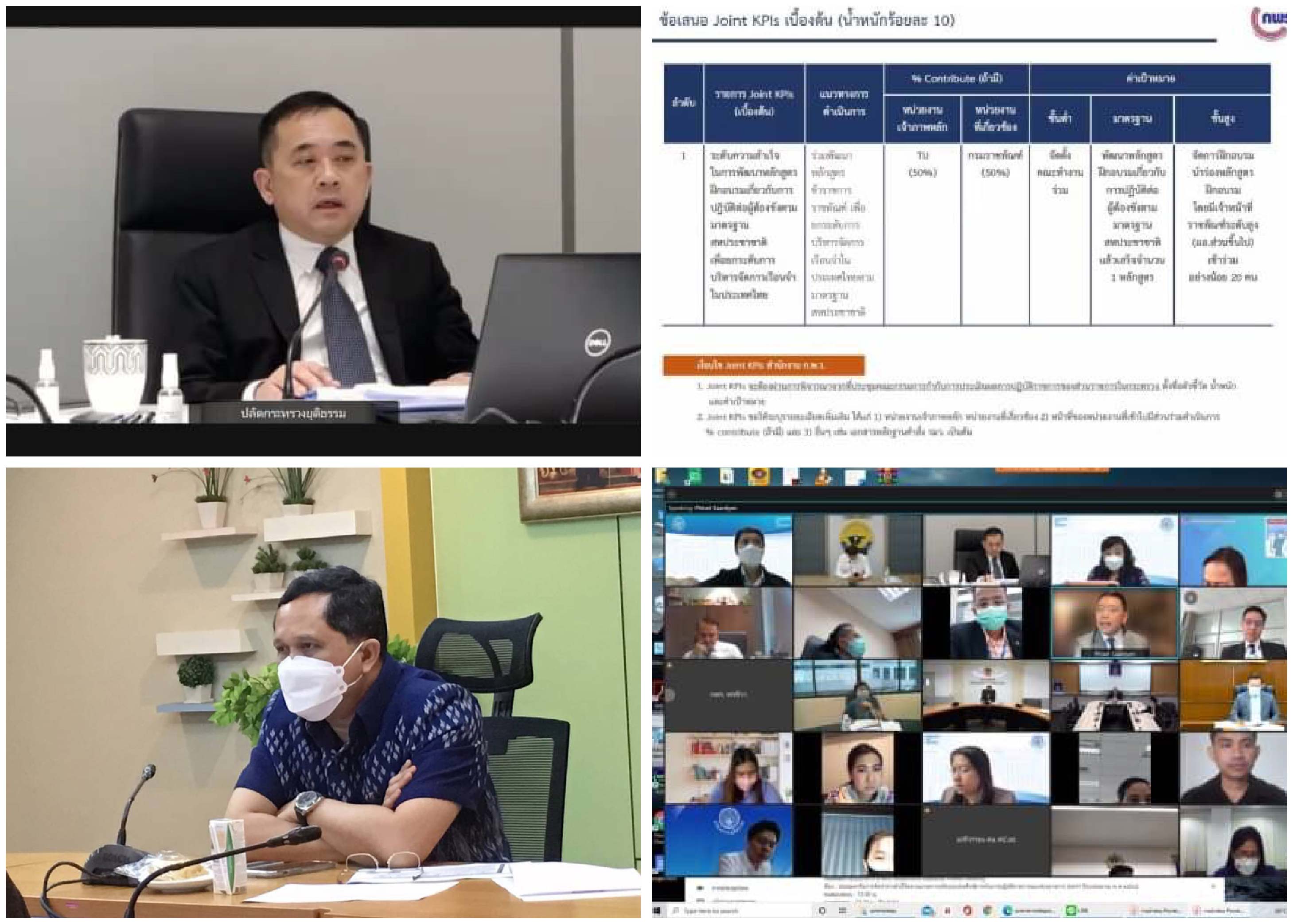 วันที่ 3 กันยายน 2564 เวลา 13.00 น. ศาสตราจารย์พิเศษวิศิษฏ์ วิศิษฏ์สรอรรถ ปลัดกระทรวงยุติธรรม เป็นประธานการประชุมคณะกรรมการกำกับการประเมินผลการปฏิบัติราชการของส่วนราชการในกระทรวงยุติธรรม ครั้งที่ 1/64 ในรูปแบบออนไลน์ ผ่านระบบ Webex Cisco โดยมีพันตำรวจโทพงษ์ธร ธัญญสิริ ผอ.สกธ. นายชัยวัฒน์ ร่างเล็ก รอง ผอ.สกธ. พร้อมกับเจ้าหน้าที่ สกธ. เข้าร่วม การประชุม โดยคณะกรรมการชุดดังกล่าว มีประธานค.ต.ป. ประจำ ยธ./ หัวหน้า/รองหัวหน้าส่วนราชการใน ยธ. / ผอ.องค์การมหาชนภายใต้การกำกับ รมว.ยธ./ ผู้แทนกลุ่ม ป.ย.ป.ยธ. /สำนักงบประมาณ/สำนักงาน ก.พ.ร./สภาพัฒน์ เป็นกรรมการ และ.ก.พ.ร.ยธ. เป็นฝ่ายเลขานุการ ซึ่งวันนี้มีวาระการหารือหลักคือการจัดทำร่างตัวชี้วัดตามมาตรการปรับปรุงประสิทธิภาพฯ ปีงบประมาณ 2565 สามารถสรุปประเด็นการประชุมได้ ดังนี้
