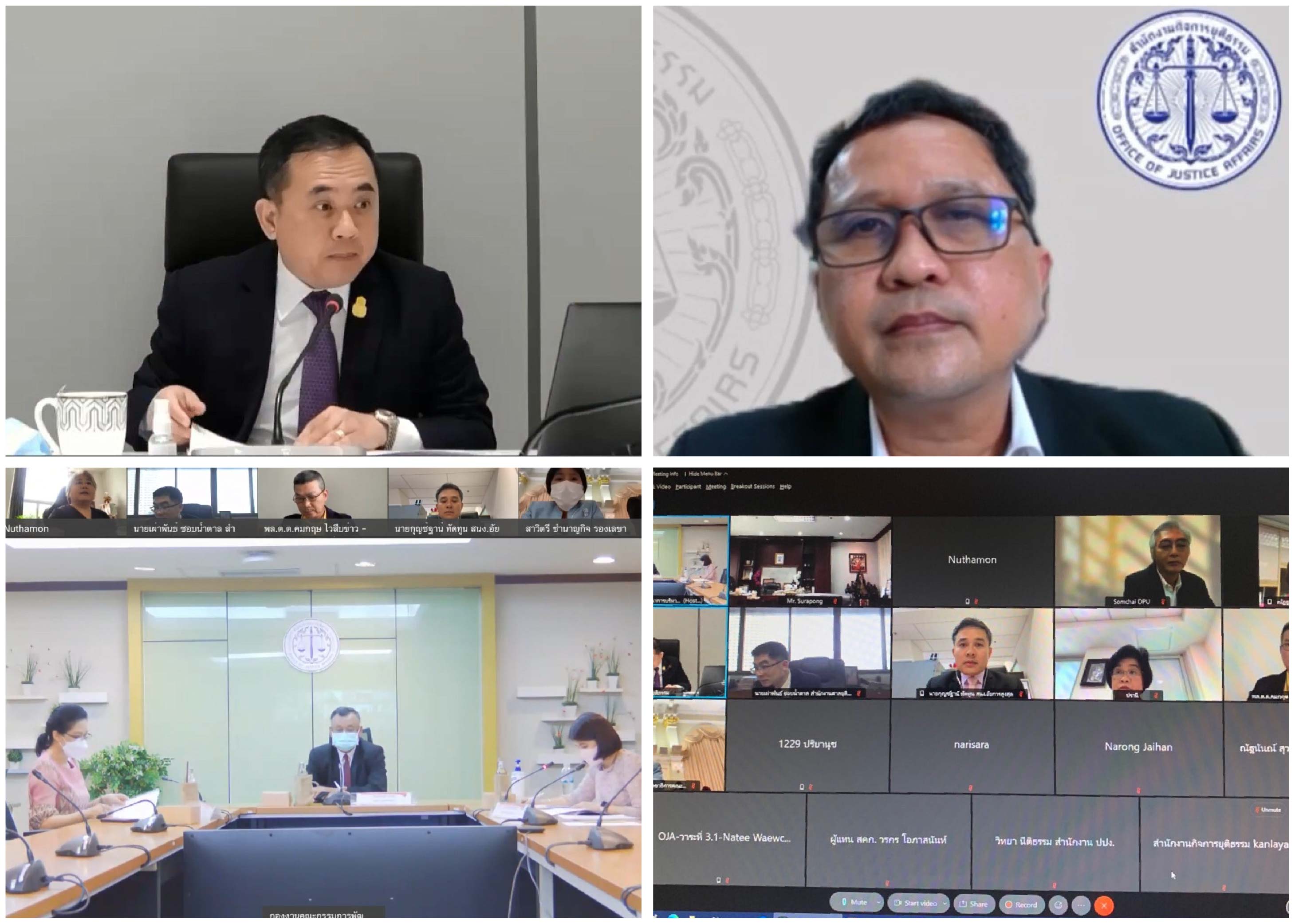 วันอังคารที่ 14 กันยายน 2564 เวลา 13.30 น. ศาสตราจารย์พิเศษวิศิษฎ์ วิศิษฎ์สรอรรถ ปลัดกระทรวงยุติธรรม เป็นประธานการประชุมคณะอนุกรรมการพัฒนากฎหมายและการบังคับใช้ ครั้งที่ 4/2564 โดยวิธีการประชุมทางไกล (Video Conference) พร้อมด้วยพันตำรวจโทพงษ์ธร ธัญญสิริ ผู้อำนวยการสำนักงานกิจการยุติธรรม นายชัยวัฒน์ ร่างเล็ก รองผู้อำนวยการสำนักงานกิจการยุติธรรม และผู้แทนจากหน่วยงานในกระบวนการยุติธรรม เช่น สำนักงานศาลยุติธรรม สำนักงานอัยการสูงสุด และสำนักงานคณะกรรมการกฤษฎีกา เข้าร่วมประชุม เพื่อพิจารณาร่างพระราชบัญญัติประวัติอาชญากรรม พ.ศ. …. โดยที่ประชุมได้มีมติเห็นชอบในหลักการของร่างพระราชบัญญัติฯ และมอบหมายให้ฝ่ายเลขานุการ ปรับปรุงร่างพระราชบัญญัติฯ ให้มีความครบถ้วนสมบูรณ์ ตามข้อสังเกตเพิ่มเติมเรื่องคณะกรรมการที่จะทำหน้าที่ช่วยเหลือนายทะเบียนในการพิจารณากลั่นกรองคำร้องขอเปิดเผยหรือไม่เปิดเผยประวัติอาชญากรรม