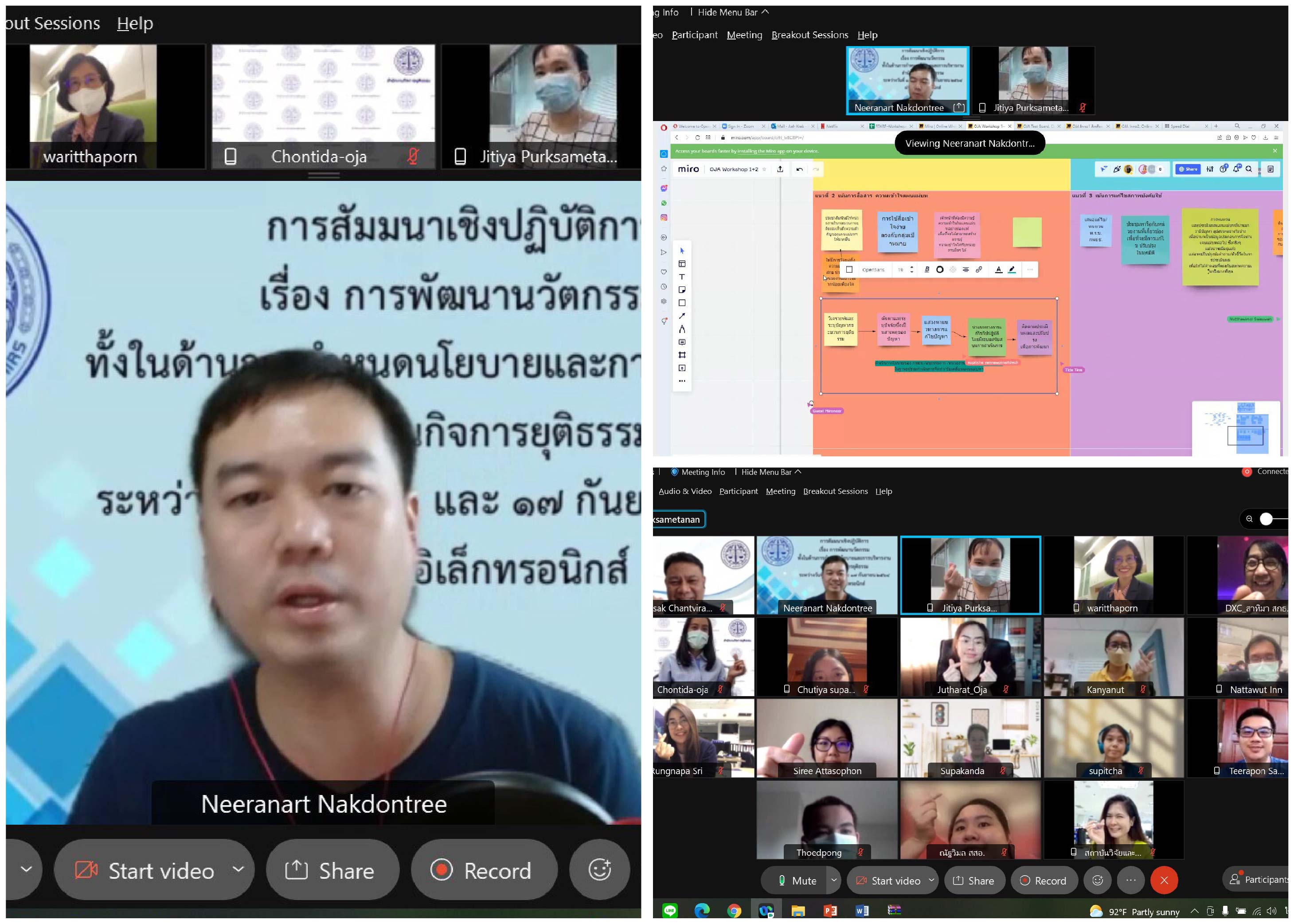 >>วิทยากร ได้ให้แนวคิดต่อยอดจากการสัมมนาครั้งที่ผ่านมา ในเรื่องการพัฒนานวัตกรรม ว่าหลังจากที่ได้มีการกำหนดสาเหตุหลัก/สาเหตุย่อยของปัญหา เรียบร้อยแล้ว ให้ดำเนินการวิเคราะห์กำหนดแนวทางในการแก้ปัญหาที่เกิดขึ้น ซึ่งจากการสัมมนาฯ. ได้กำหนดประเด็นปัญหาสำตัญ คือ “หน่วยงานที่เกี่ยวข้องไม่นำแผนแม่บทฯ ไปปฎิบัติ” ซึ่งจากประเด็นปัญหาข้างต้น ได้มีการพิจารณาคุณค่าของแผนแม่บทฯ ต่อหน่วยงานในกระบวนการยุติธรรม/ประชาชน/สังคม รวมทั้งระบุแนวทางการแก้ปัญหา ซึ่งผู้เข้าร่วมการสัมมนาระดมความเห็นออนไลน์ ผ่าน application Miro และสรุปประเด็นการสัมมนาได้ ดังนี้