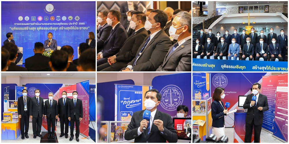 โดยบรรยากาศภายในงาน หน่วยงานในสังกัดกระทรวงยุติธรรม ได้จัดบูธนิทรรศการแสดงผลงานตลอดปีที่ผ่านมา ซึ่งสำนักงานกิจการยุติธรรมได้นำเสนอผลการดำเนินงานสำคัญในประเด็นการขับเคลื่อนกรอบการป้องกันอาชญากรรม ประเด็นการส่งเสริมการรับรู้กฎหมายและกระบวนการยุติธรรมทั้งในรูปเเบบสื่อต่างๆ เพิ่มการเข้าถึงความรู้กฎหมายเพื่อป้องกันการกระทำผิดจากการไม่รู้กฎหมาย ผ่านช่องทางออนไลน์และโซเชียลมีเดียของสำนักงานกิจการยุติธรรม เช่น เฟซบุ๊ก อินสตาเเกรม ทวิตเตอร์ www.justicechannel.org เป็นต้น ประเด็นร่าง พ.ร.บ.มาตรการป้องกันการกระทำความผิดซ้ำในความผิดเกี่ยวกับเพศหรือที่ใช้ความรุนแรง พ.ศ. …. ซึ่งปัจจุบันกฎหมายอยู่ระหว่างการรอประกาศใช้