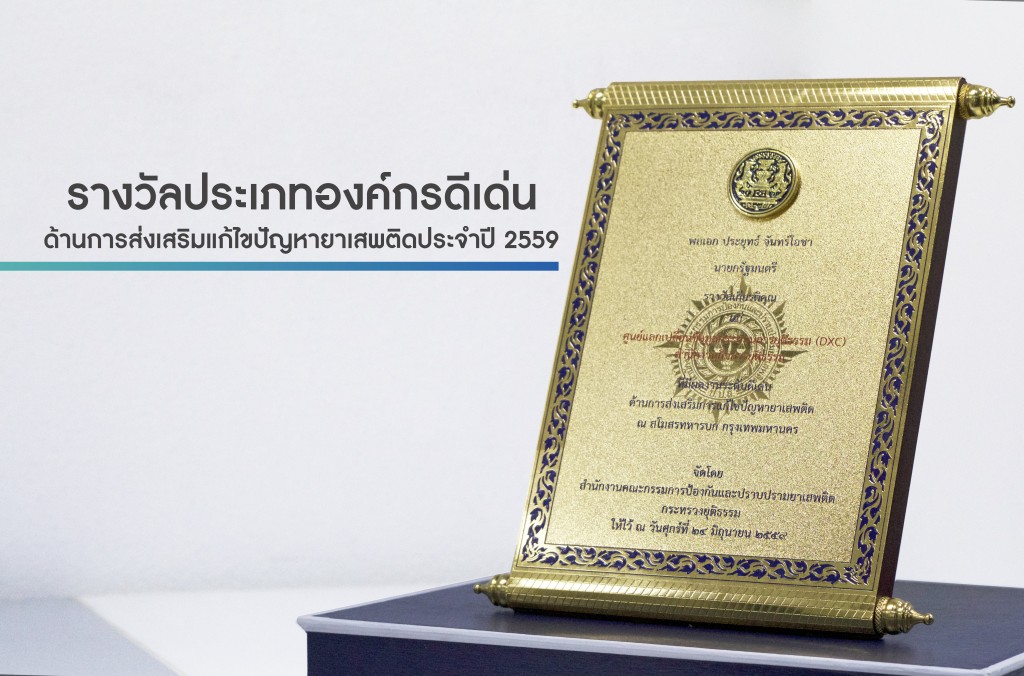 องค์กรดีเด่น ด้านการส่งเสริมแก้ไขปัญหายาเสพติดประจำปี 2559